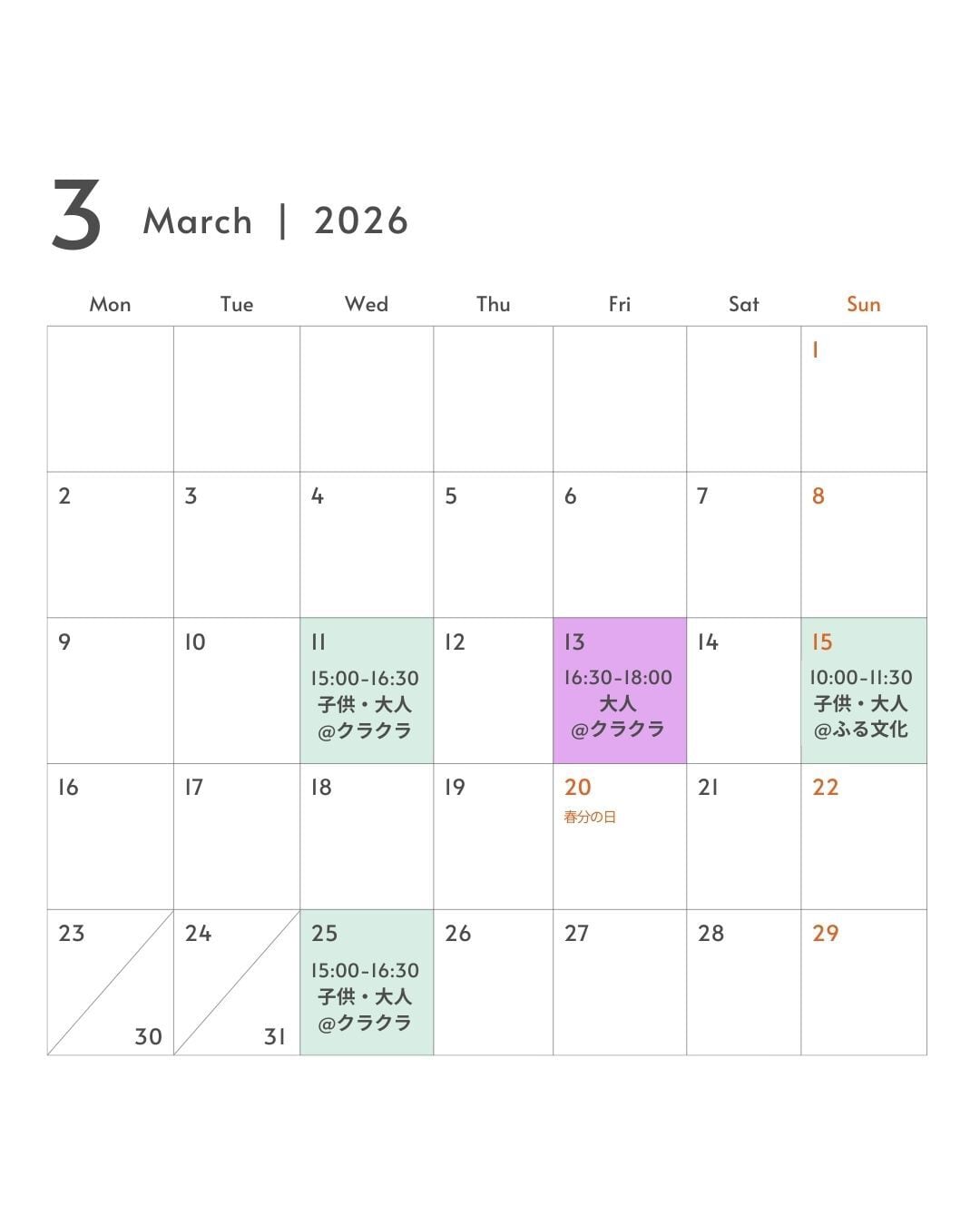 **日曜クラス**